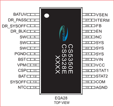 CS5350E是一款24V耐壓, 1-5節鋰電池或1-6節磷酸鐵鋰電池異步降壓型充電管理IC。具備涓流充電,恒流充電,恒壓充電的完整充電過程。