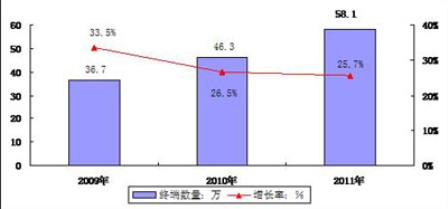 - 到2011年,中國(guó)車載視聽系統(tǒng)終端的累計(jì)數(shù)量將會(huì)達(dá)到54.6萬臺(tái)