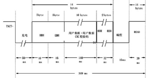 根據射頻信號的寫入格式,按照如下的寫入時序,即可將數據寫入射頻卡內。見圖7.