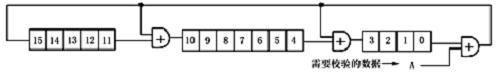 本文采用的CRC-CCITT,能檢測出所有的雙錯、奇數位錯、突發長度不大于16的突發錯以及99.997%的突發長度為17的突發錯和99.998%的突發長度大于或等于18的突發錯。CRC校驗碼的數學原理本文在此不作介紹。本文在這里說明怎樣實現CRC校驗。CRC校驗碼的運算可以用移位寄存器和半加器來實現。如附圖8所示。