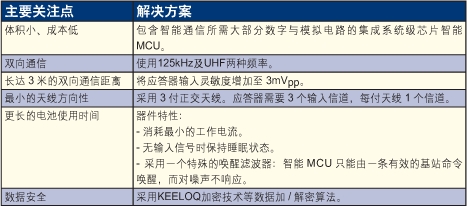 表1:PKE智能應答器的主要技術(shù)難點與解決方案。