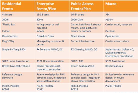 Picochip不僅提供低成本的家庭接入產品,還提供針對企業和公共接入的大規模64用戶系統,滿足多層次全方面的市場需求。多樣化產品如下圖所示。