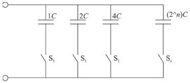 機械微調(diào)電容器既不是集成的也不是電可控的,二極管電容不能充分隔離信號電壓和控制電壓。因此,最好的方法是用電容陣列,如圖6所示,由半導(dǎo)體開關(guān)控制。將圖1 中的C1、C2 用電容陣列取代。當(dāng)電容值在1到50 pF之間時,開關(guān)選用了低電容DMOS開關(guān)。與普通開關(guān)不同, DMOS開關(guān)存在寄生效應(yīng)。在斷開期間,開關(guān)引腳之間、信號引腳與地之間都存在這寄生電容。這些電容使得電容陣列的調(diào)諧范圍變窄,同樣也使天線阻抗的調(diào)諧范圍變窄。這個問題仍然有待于進(jìn)一步的研究。