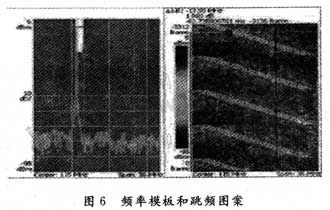 在跳頻情況下,跳頻圖案是否按照設計的跳頻圖案進行偽隨機跳變,將直接影響到跳頻系統的抗干擾性能和整個設計是否成功,所以需要對跳頻圖案進行測試驗證。實時頻譜儀的三維頻譜圖(時間、頻率和幅度)是觀測跳頻圖案的一種非常有效的方式,如圖6所示。由于頻率模板觸圖發功能的使用,可以使得工程師直接設定跳頻的起始點來捕獲跳頻信號觀測跳頻圖案,這樣就可以找到特定頻率位置的跳頻圖案。而對于傳統儀器只能隨機捕獲,很可能無法捕獲到關心的跳頻點位置的跳頻圖案。