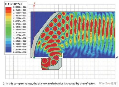 圖3:在緊縮測(cè)試場(chǎng)中由靜區(qū)上的反射面產(chǎn)生的平面波。
