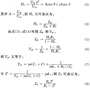 則由式(8)就可以計算出ZX。其中C為可調電容和探頭電容的總電容。