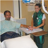 佛羅里達(dá)州那不勒斯NCH醫(yī)療保健系統(tǒng)放射實習(xí)生正在展示便攜式X光機的無線DR成像板能夠根據(jù)需要進(jìn)行最優(yōu)的調(diào)整
