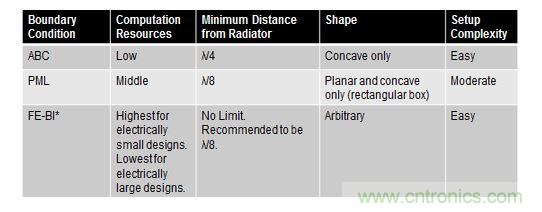 最后對三種輻射邊界條件的區(qū)別總結(jié)歸納如下表: