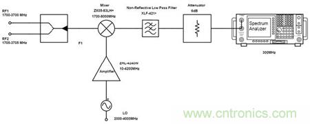 圖3 單輸入信號的中頻信號輸出頻譜測試電路框圖