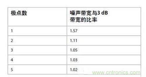圖3:巴特沃茲濾波器的噪聲帶寬與3 dB帶寬的關系。