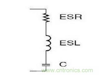 圖中ESR是電容的串聯等效電阻,ESL是電容的串聯等效電感,C才是真正的理想電容。ESR和ESL是由電容的制造工藝和材料決定的,沒法消除。那這兩個東西對電路有什么影響。ESR影響電源的紋波,ESL影響電容的濾波頻率特性。