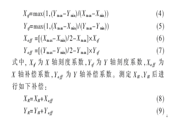 其中,(XR、YR)為經(jīng)過(guò)校正的值,將它們帶入式(3)就可以得到方位角。