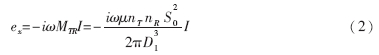 式中,nT和nR分別為發(fā)射線圈和接收線圈的匝數(shù);S0為線圈的橫截面積;I為發(fā)射線圈中的電流;μ為介質(zhì)磁導(dǎo)率; D1為T、R兩線圈之間的距離;MTR為兩線圈互感系數(shù)。所以由此而產(chǎn)生的感應(yīng)電動勢為: