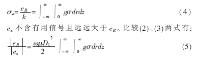 式中,ω為發(fā)射電流的頻率。由式(2)可以看出,ex是一個落后于發(fā)射電流π/2且與探頭周圍介質(zhì)導(dǎo)電率無關(guān)的電勢信號。在系統(tǒng)的接收信號中,它表現(xiàn)為一個幅值較大的背景噪音。