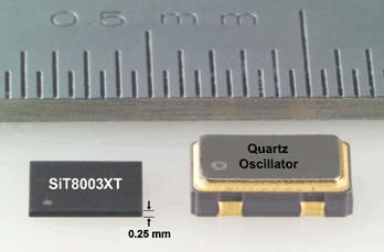 3 超薄MEMS振蕩器與一般石英振蕩器的厚度比較示意圖