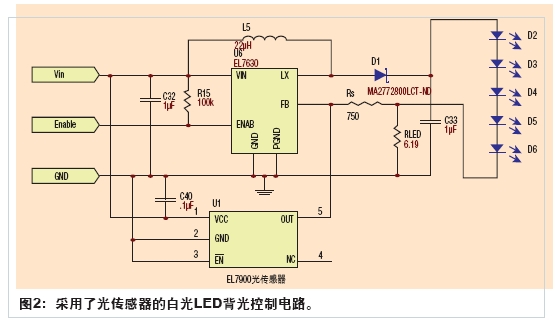 這些要求如何在一個實際的應用中實現呢?讓我們看一看環境光傳感器是如何在一個自動的白光LED背光控制電路中工作的,在汽車背光應用中通常可以看到這種控制電路。