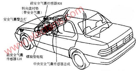 通常車型的安全氣囊系統(tǒng)結(jié)構(gòu)示意圖