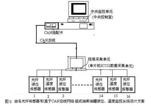 光纖傳感器與基于CAN總線網絡組成的油庫油罐的液位、溫度信號實時監測系統設計方案