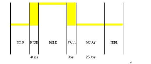 圖4是一個(gè)觸摸按鍵應(yīng)用中一次典型的按鍵波形,每個(gè)按鍵按下后,系統(tǒng)都需輸出對應(yīng)的電壓值以供其他系統(tǒng)檢測。該應(yīng)用要求響應(yīng)時(shí)間小于等于40ms,當(dāng)按鍵被長按時(shí),需要一直輸出按鍵電壓,即使按鍵釋放后,仍需250ms時(shí)間保持原有按鍵電壓,之后停止輸出按鍵電壓,進(jìn)入空閑狀態(tài)。系統(tǒng)共包含12個(gè)觸摸按鍵,當(dāng)多個(gè)按鍵被同時(shí)按下時(shí),系統(tǒng)不響應(yīng)。系統(tǒng)低功耗設(shè)計(jì)要求為,系統(tǒng)待機(jī)時(shí)沒有按鍵操作的平均電流應(yīng)至少小于1mA。