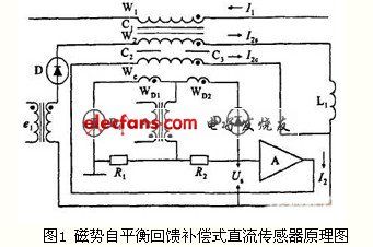本課題建立了一種磁勢自平衡回饋補償式直流傳感機理與方法。磁勢自平衡回饋補償式直流傳感機理與方法既具有直流閉環測量原理準確度高、線性度好、抗干擾能力強的優點,也具有開環測量原理電路結構調試簡單、消除大功率驅動的困惑、且不存在系統振蕩向題的優點。這種測量方法在原理上表現了新穎的特征:由串聯型直流電流互感器工作原理可知,同名端對接的兩個飽和電抗器在交流電源的正、負半周內,各自維持一次直流被測電流與二次電流之間的磁動勢平衡,即在其半個周期內由一個鐵心和線圈構成的一個電抗器就可以自動建立此時一、二次之間的直流磁勢平衡。但這種磁勢平衡沒有閉環系統磁勢平衡的準確度高,我們就用差值電流補償的方法實現檢測鐵心線圈的直流零安匝補償。此時因一次被測電流磁勢絕大部分已被電抗器直接由交流電源提供的電流自動平衡掉,由剩余磁勢檢測回饋的補償電流就很小,電子模塊的功率小,可靠性高。且該回饋系統的補償電流具有閉環系統自動跟蹤補償的特性。雖然該直流磁勢平衡回路是工作在半個周期的情況下,但經濾波電感濾波后,再加上差值電流回饋補償系統補償的電流,即可得到希望的電流。