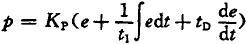 式中,比例作用KP=R2/R1=10,積分作用t1=R2C2,微分作用tD=R1C1。