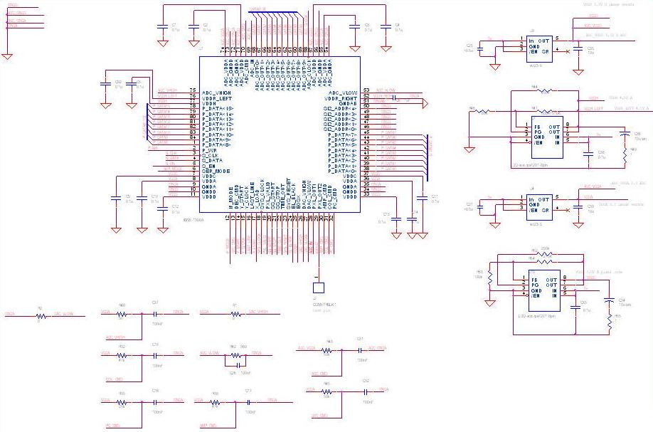 從硬件設(shè)計的原理圖可以看出,CMOS圖像傳感器只需提供少量的電源轉(zhuǎn)換器件即可正常工作,這是因為CMOS圖像傳感器功耗很小,只需采用USB總線提供的5v電壓就可以驅(qū)動其正常工作。另外CMOS圖像傳感器芯片僅需要少數(shù)的幾個外部控制信號即可完成圖像的采集(本系統(tǒng)的控制信號由USB數(shù)據(jù)傳輸板上的CPLD芯片提供),且芯片內(nèi)部集成了輸出放大器,數(shù)模轉(zhuǎn)換模塊,只需修改芯片中的特殊寄存器值即可改變輸出放大器的偏置電壓,增益等參數(shù),這樣就大大降低了硬件設(shè)計的復(fù)雜度和成品的體積,具有很高的應(yīng)用價值。
