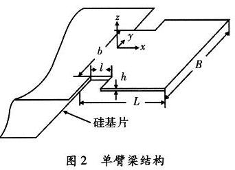 Aasys是一個(gè)可在微機(jī)上使用的綜合性有限元軟件,是微機(jī)電系統(tǒng)設(shè)計(jì)中廣泛使用的有限元分析軟件。通過(guò)有限元的分析計(jì)算可以預(yù)測(cè)懸臂梁上引力分布、固有頻率、可測(cè)最大加速度等,進(jìn)而指導(dǎo)梁結(jié)構(gòu)參數(shù)的選取。經(jīng)過(guò)對(duì)梁結(jié)構(gòu)有限元的計(jì)算分析選取單臂梁、雙臂梁結(jié)構(gòu)參數(shù),如表1所示。