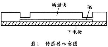 壓阻式加速度傳感器的彈性元件一般采用硅梁外加質(zhì)量塊,質(zhì)量塊由懸臂梁支撐,并在懸臂梁上制作電阻,連接成測(cè)量電橋。在慣性力作用下質(zhì)量塊上下運(yùn)動(dòng),懸臂梁上電阻的阻值隨應(yīng)力的作用而發(fā)生變化,引起測(cè)量電橋輸出電壓變化,以此實(shí)現(xiàn)對(duì)加速度的測(cè)量。