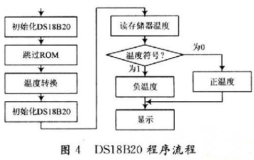 要進行溫度控制,首先要測量所控制目標的溫度值,在本系統中,具體使用數字溫度傳感器DSl8B20與DSP結合,并利用CCS編寫程序,本系統開發平臺為CCS 2.2,前期安裝及芯片設置在此省略,程序流程如圖4所示。
