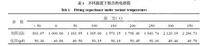擬合參數(shù)最大時(shí)為5.037×10-8,最大相對誤差為0.78%。當(dāng)溫度變化時(shí),金屬鉑電阻值發(fā)生變化,在不同的溫度下擬合的電容值和溫度的關(guān)系如表1所示(加入1%的白噪聲)。