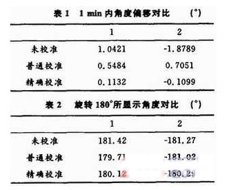 ADIS16365擁有較為完善的數(shù)據(jù)處理方案,經(jīng)測(cè)試,使用其內(nèi)部校正功能可以明顯改善系統(tǒng)性能。根據(jù)寫入GLOB_CMD寄存器命令的不同,可以采用不同的處理方法。表1和表2列出了內(nèi)部普通校準(zhǔn)和精確校準(zhǔn)與未校準(zhǔn)數(shù)據(jù)的比較?! ?/p>