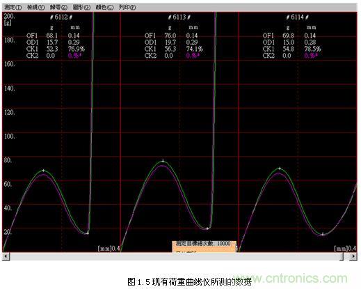 隨著電子技術與控制技術的快速發展,按鍵開關荷重位移曲線儀也要跟上時代的步伐,從一開始只能測出OF、OD和CK值發展到現在能同時測出23個參數,有PK,CK,RPK,RLK,LK等值,可以通過設定上下限來保護儀器被壓壞荷重感應器。最小顯示行程也從1mm發展到現在的0.001mm,最小顯示荷重也從10克精度到現在的0.01克精度,界面設定也從嵌入式發展到現在利用WINDOWS中文視窗畫面設定,操作簡單方便,且所有資料皆可儲存(試驗條件、荷重曲線圖、測試結果、檢查報表…等等)。