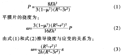 根據膜的結構與應力計算公式,推出被測壓力與應變片測出的應變關系: