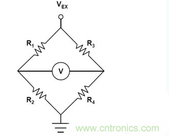 圖1:受激勵電壓VEX和差分輸出電壓V驅動的惠斯頓橋