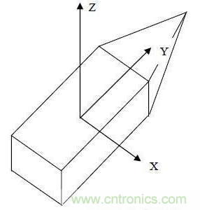 在本系統中,三軸加速度計和三軸MR傳感器都以以下的方式安裝于電路板上:它們的X軸平行于系統的橫軸指向右,Y軸平行于系統的縱軸指向前,X、Y、Z軸定義為右手坐標系統,如圖2所示。