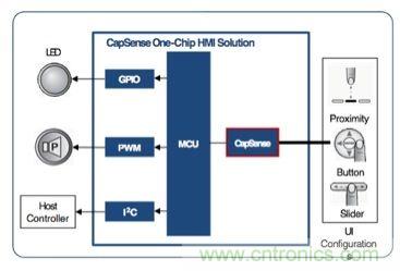 電容式接近感應優于其它技術的主要原因之一是能夠實現的集成度水平。電容式接近感應解決方案基本上可以集成諸如觸摸按鍵和滑條等用戶界面功能。與采用移動機械部件的更復雜系統相比,這些功能不但易于實現,而且時尚美觀。