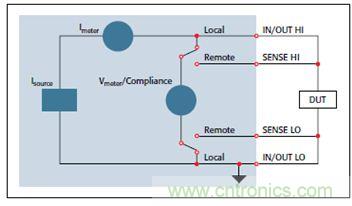 圖2:SMU儀器作為恒流源和伏特計的配置,用于測量DUT的響應