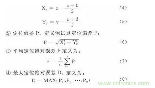 ①偏差Xp、Yp。假設(shè)在物理平臺(tái)上測試點(diǎn)的網(wǎng)格坐標(biāo)取值范圍為X∈[a,b],Y∈[c,d](a、b、c、d為非負(fù)整數(shù),b-a=d-c=1,單位為cm)通過軟件求得的坐標(biāo)為(x,y),定義偏差Xp、Yp: