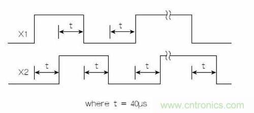 該芯片產(chǎn)生的正交X方向輸出信號模擬了普通編碼器的輸出。X和Y信號都可以用于2D系統(tǒng)。OM02以最高約25kHz的頻率產(chǎn)生X1和X2正交信號。圖1顯示了正向X運動(向右方向)的時序圖。這種正交輸出在需要時還可以用于直流步進電機控制。