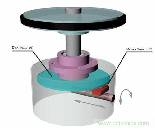 【導(dǎo)讀】本設(shè)計實例使用光學(xué)電腦鼠標(biāo)中的傳感器測量圓盤的旋轉(zhuǎn),其中的圓盤可以通過機械方式連接到任何一種旋轉(zhuǎn)裝置。通過沿著圓盤半徑改變傳感器位置,該方案可以調(diào)整每次旋轉(zhuǎn)的脈沖。