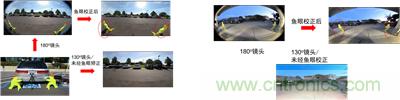 ASX344AT的魚眼畸變校正功能提供180o更廣的場景覆蓋,傳感器動態范圍體現出良好的DR-Pix像素技術,無論在白天還是夜間都較未經魚眼校正的鏡頭更具安全優勢。如圖1所示,未經魚眼校正的鏡頭沒有捕捉到小黃人的圖像信息,而經魚眼校正后,駕駛員可從顯示器看到車后的兩個小黃人,從而避免倒車時的安全隱患。