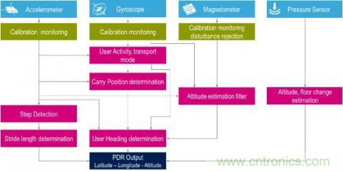 目前業內正在開發不同的行人航位推算解決方案,大都采用無線發射器充當信標,利用三角測量法計算接收器的位置。這些解決方案利用室內環境中的Wi-Fi接入點(AP)定位。類似的解決方案還包括使用藍牙發射器、GSM和其它手機發射器或專用信標,例如Nextnavfor室內定位設備。這些技術整合運用服務器等基礎設施傳送的輔助GPS/GLONASS數據、星歷擴展數據和Wi-Fi接入點(AP)位置數據。此外,還有一種使用MEMS傳感器(加速度計、磁力計、陀螺儀和高度計)計算位置數據的室內導航技術。今天幾乎所有的智能手機、平板電腦、數碼相機、健身產品等便攜消費電子產品都配有MEMS傳感器。這些傳感器配合行人航位推算(PDR) 技術能夠確定用戶位置。每項室內定位技術都有其長處和短板。
