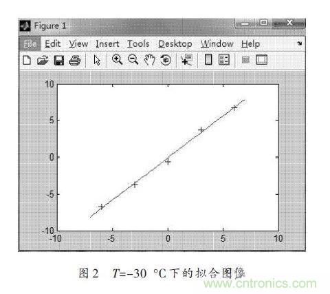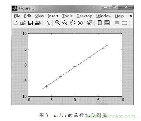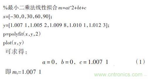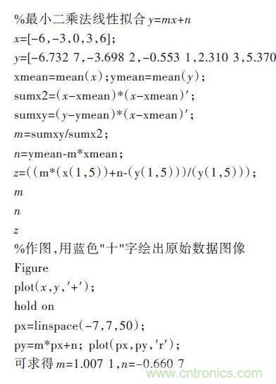 由于按照最小二乘法的基本步驟進行擬合的計算量比較大,所以本文采用Matlab進行數(shù)據(jù)處理,這樣不但可以減少復雜的計算過程,而且還可以保證較高的計算精度。