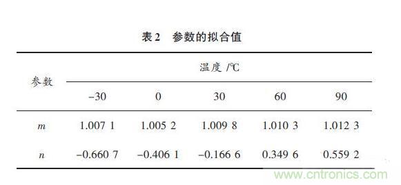 依次求出不同溫度下參數(shù)m 和n 的值,計算結(jié)果如表2所示。