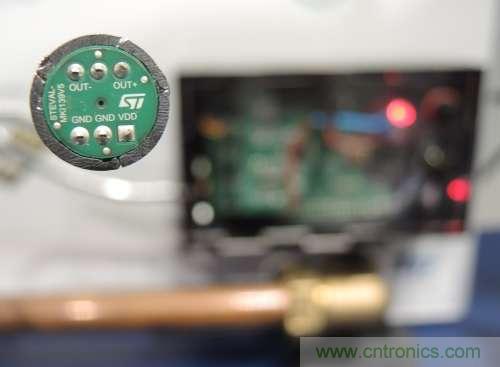 意法半導體(STMicroelectronics;ST)展示了一種能夠拾取20Hz至80KHz訊號的MEMS麥克風,可深層監聽超音波頻譜,以檢測建筑物中的管線泄漏等故障情況。如同在Sensor Expo展場的其他傳感器一樣,這款低于1美元的組件目的在于將數據串流傳輸到執行嵌入式分析的微控制器(MCU)。