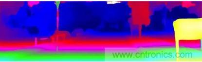 實際輸出的深度圖,不同的顏色代表不同的距離