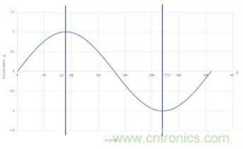 圖1:單軸加速度傳感器360°旋轉對應輸出