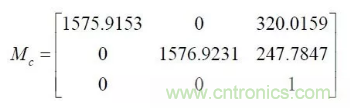 其中:(u,v)是特征點的圖像坐標,(u0,v0) 光軸中心的圖像坐標,(kx ky )是X 軸,Y 軸方向的放大系數,(xc yc zc) 是特征點在攝像機坐標系下坐標, Mc 是攝像機內參數矩陣。